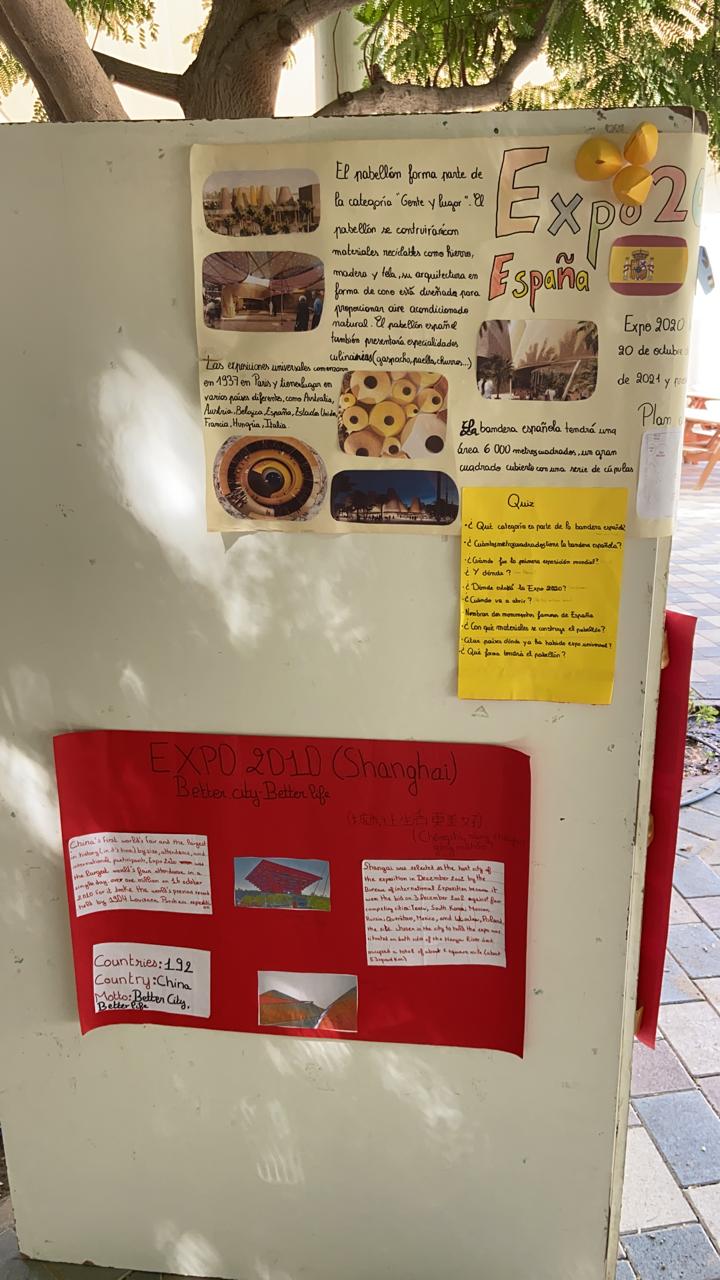 Pour fêter cet événement, le département d’histoire-géographie est à l’initiative d’une exposition intitulée « EXPO 2020: 1 YEAR TO GO », installée dans les couloirs de l’école élémentaire et dans la cour du secondaire. Les classes de l’élémentaire et les départements d’arabe, d’anglais, d’allemand, d’espagnol, d’italien, d’histoire-géographie et de la spécialité Histoire-Géographie-Géopolitique Sciences Politiques ont été mobilisés pour préparer cette exposition. Un grand merci aux élèves et à leurs professeurs.