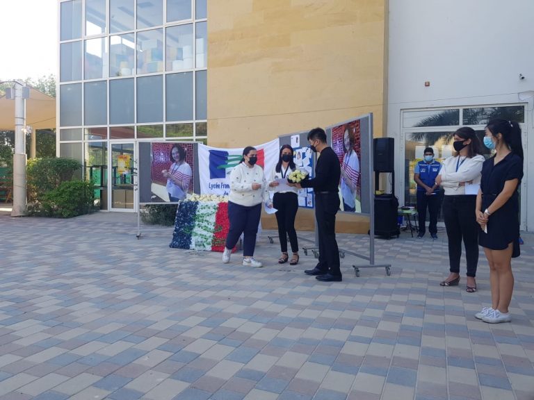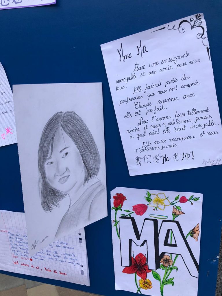 Aujourd’hui dimanche 29 novembre, le LFI a rendu hommage à notre chère collègue et professeure Mme Lin MA. Les élèves sinisants, ainsi que les enseignants et personnels administratifs se sont rassemblés à 10h dans la cour du secondaire en maintenant la distanciation sociale. Un discours a été enoncé par Mme Imad au nom du Proviseur, suivi par un mot de la coordinatrice des langues Mme Frédérique Deborde puis un mot de la part des élèves. Une minute de silence a été observée, et une fleur blanche a été distribuée à chaque élève sinisant par les surveillants en respectant les normes d’hygiène.