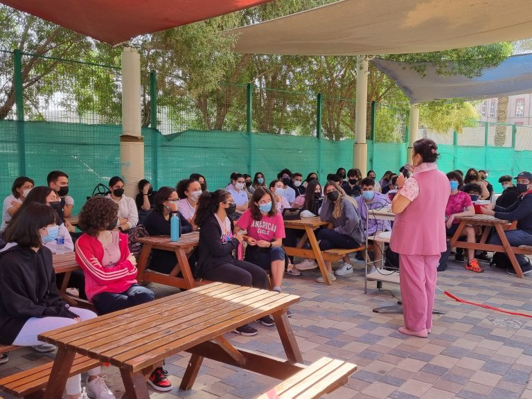 Une intervention a également été mise en place avec le Dr Rita SAKR (gynécologue, consultante en chirurgie du sein) et le Dr Simon SFEIR (radiologue), dans la cour du secondaire pour les élèves de Première et de Terminale.
