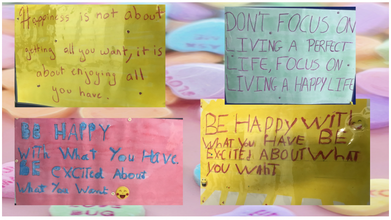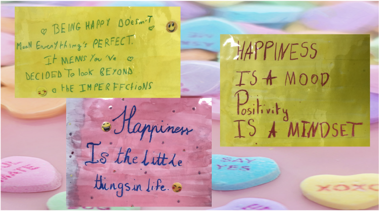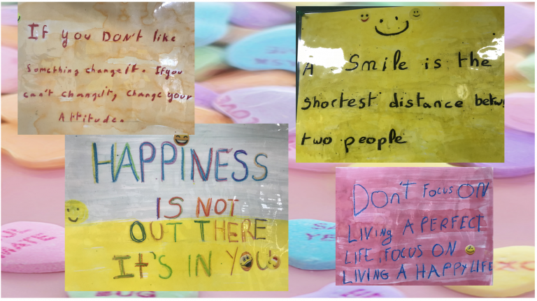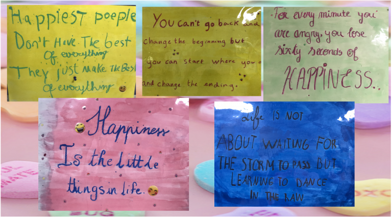 - Le pouvoir des mots: Les élèves de CM2 fêtent le bonheur en anglais en partageant leur citation préférée parlant du bonheur… et c’est que du bonheur !