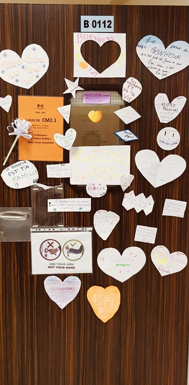 - Des messages positifs, des moments préférés, des synonymes, des cœurs, des coccinelles… le bonheur s’affiche en couleurs sur nos « porte-bonheur » du CP au CM2. C’est le bonheur au LFI!