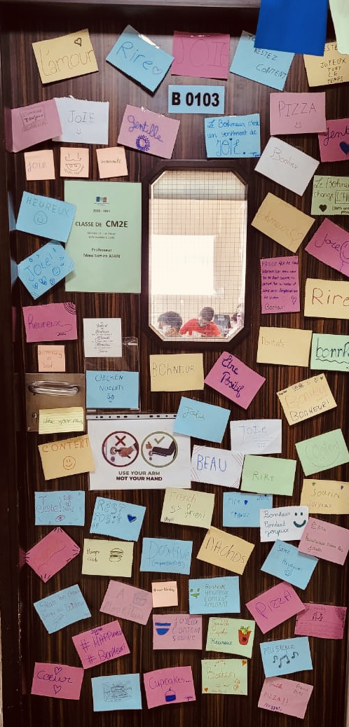 - « Sous nos masques, il y a nos sourires! » Les CE1A nous donnent du bonheur… et pas qu’aujourd’hui ! Journée du Bonheur au LFI Dubaï.
