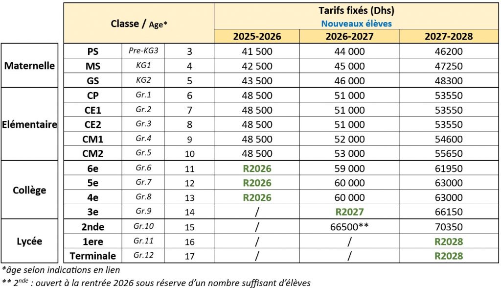 Vous pouvez consulter l’ensemble des frais scolaires sur la School Fees Fact Sheet que vous pourrez trouver ici: https://lfidubai.aflec-fr.org/admission/school-fees-fact-sheet/